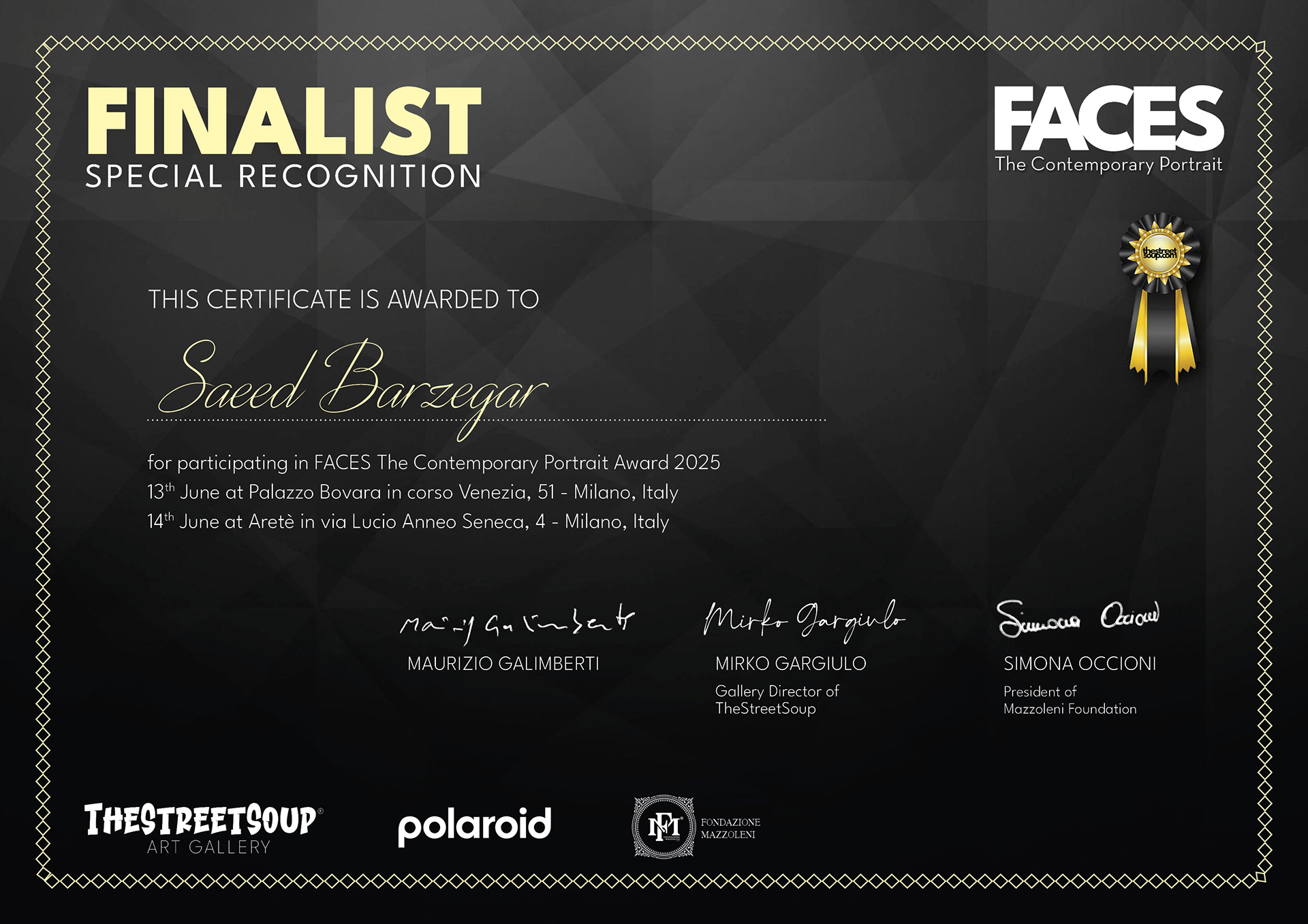 June 2025: Finalist at FACES Exhibition and Award, Milan, Italy