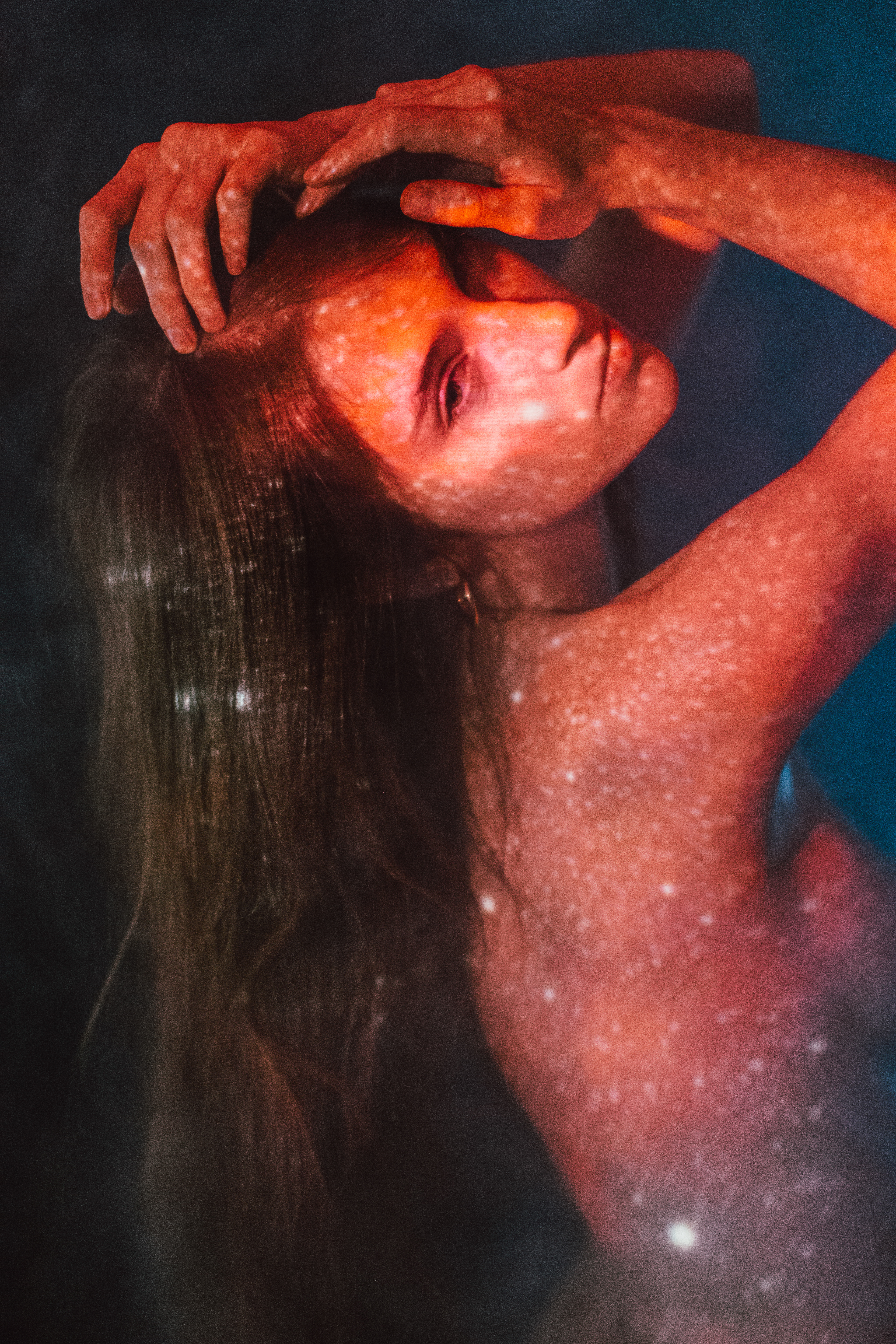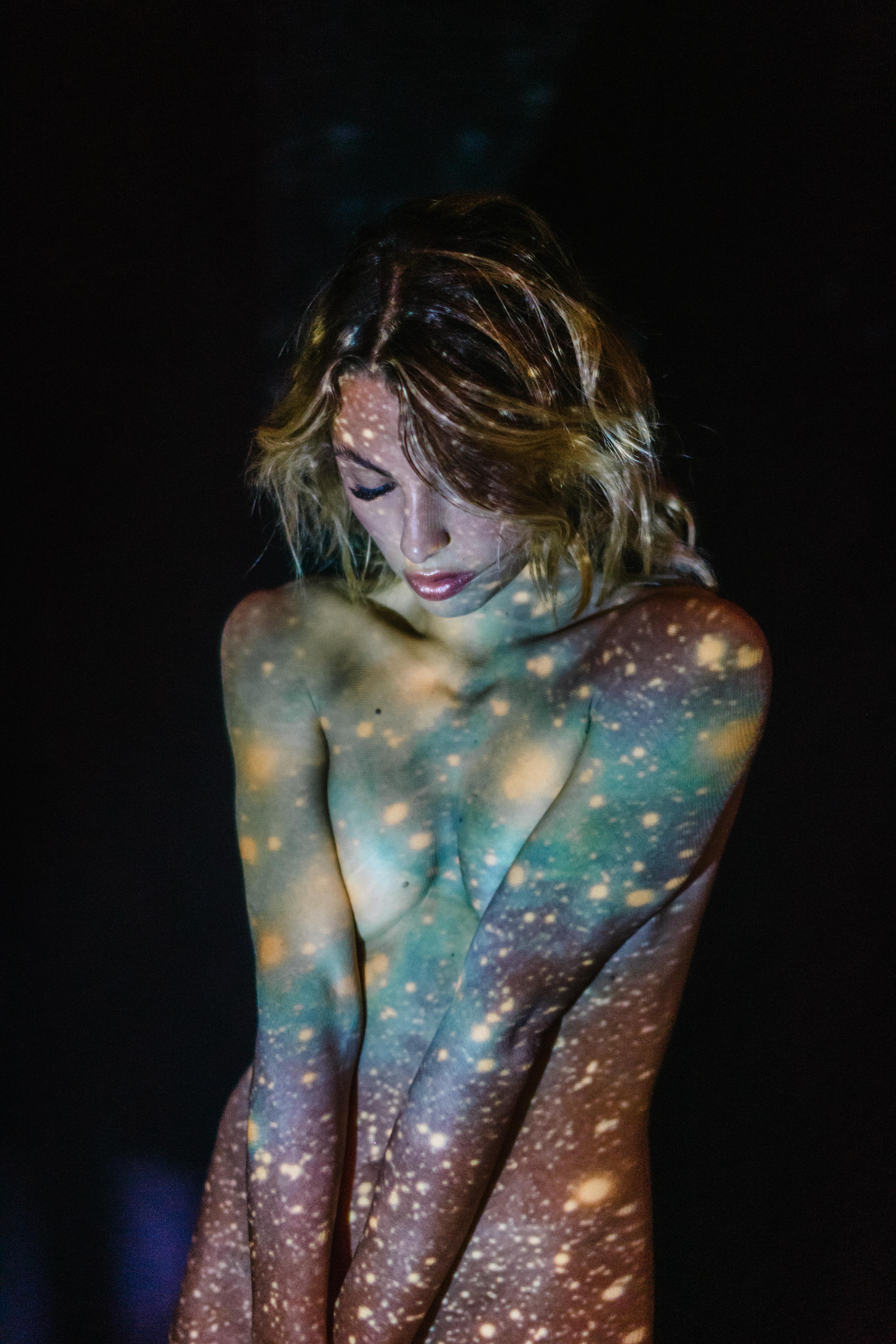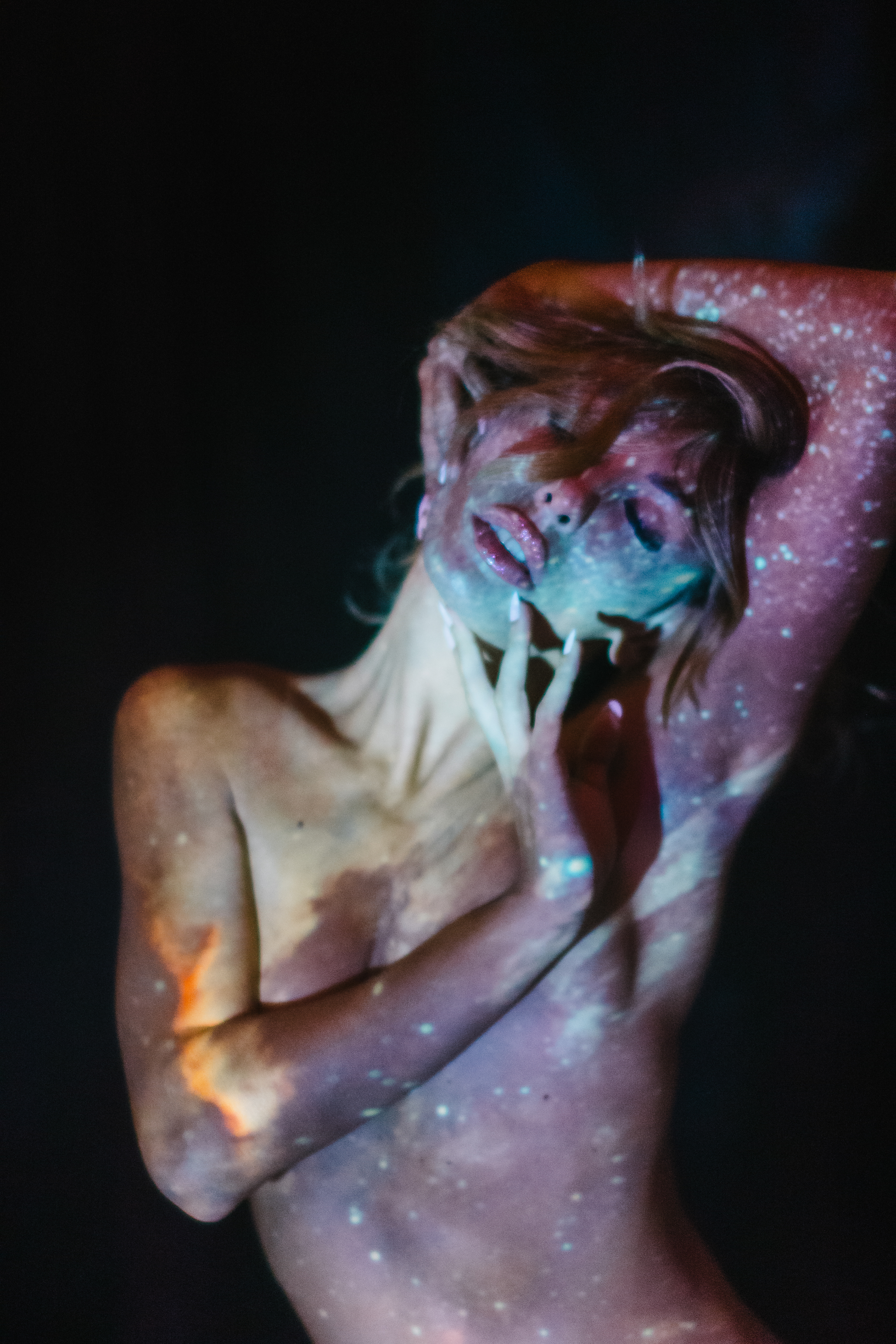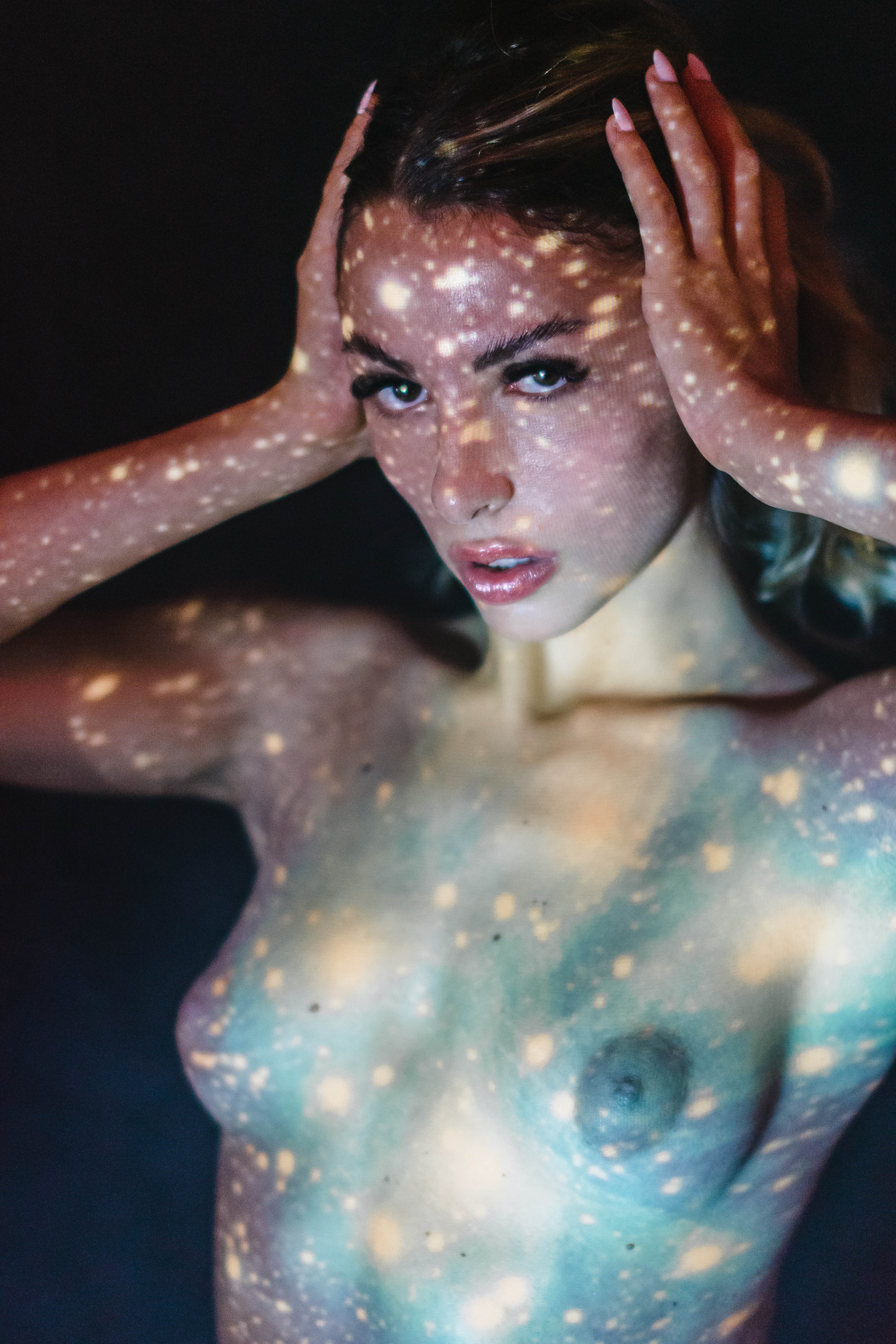 Featured on D'Arblay Street Gallery Website I reimagine the light as a bridge between the inner and outer worlds. By projecting cosmic imagery onto the human form, the collection captures a dynamic interplay where personal identity and the vast universe intersect. The projected light serves not just as an external source, but as a means of revealing an inner landscape, transforming the body into a canvas that reflects both the intimate and the infinite. Astrophotography images projected are taken by Jason Betzner.