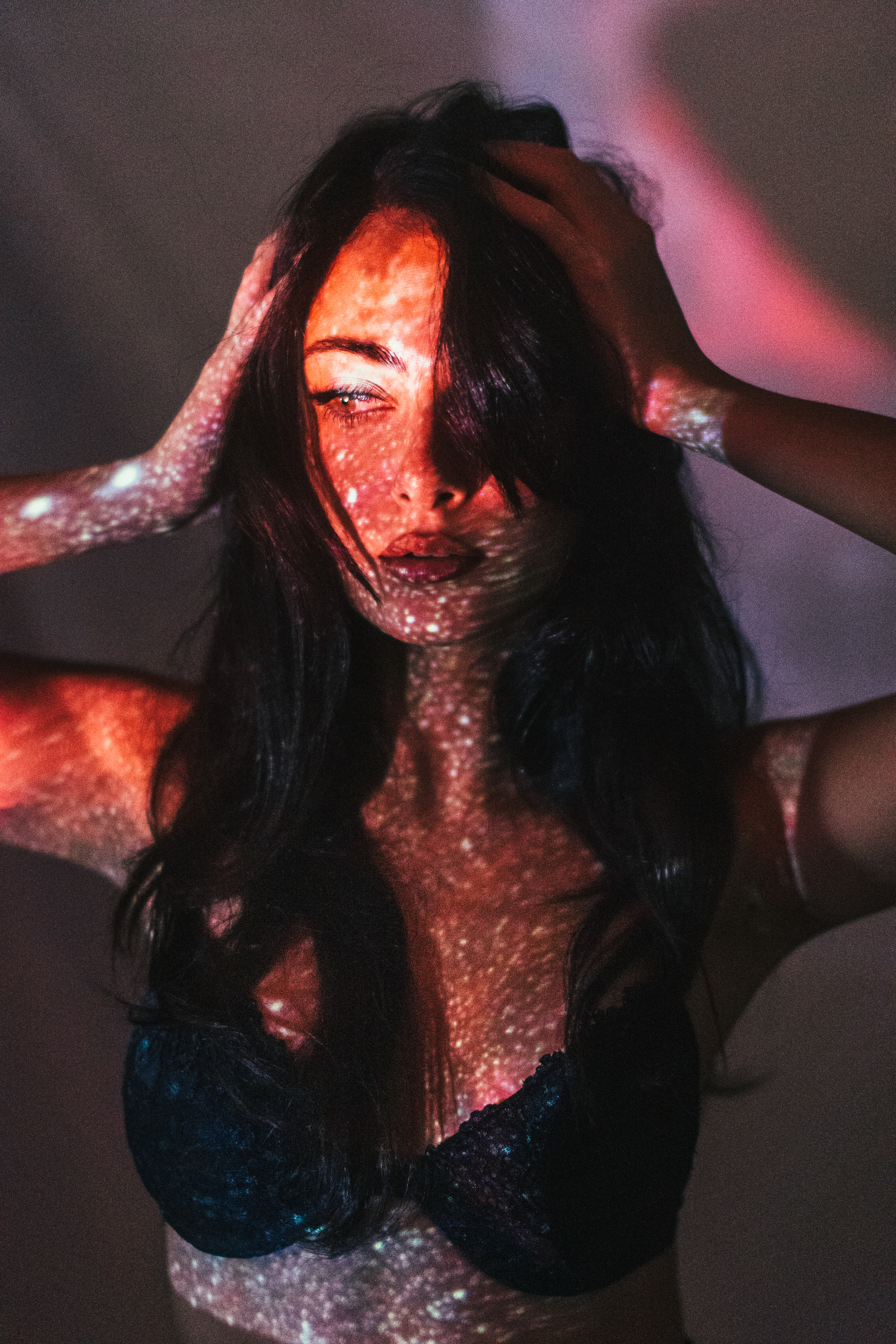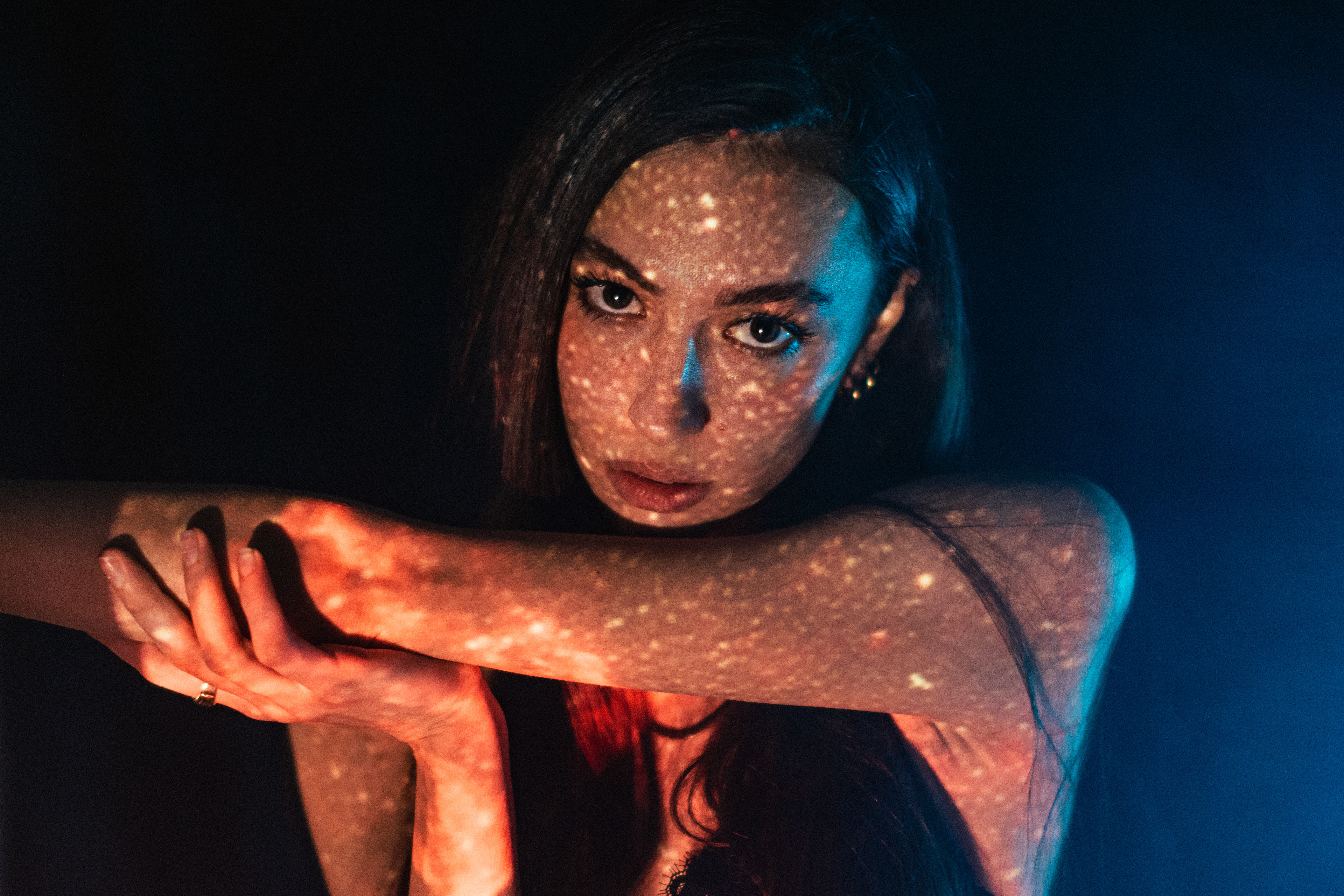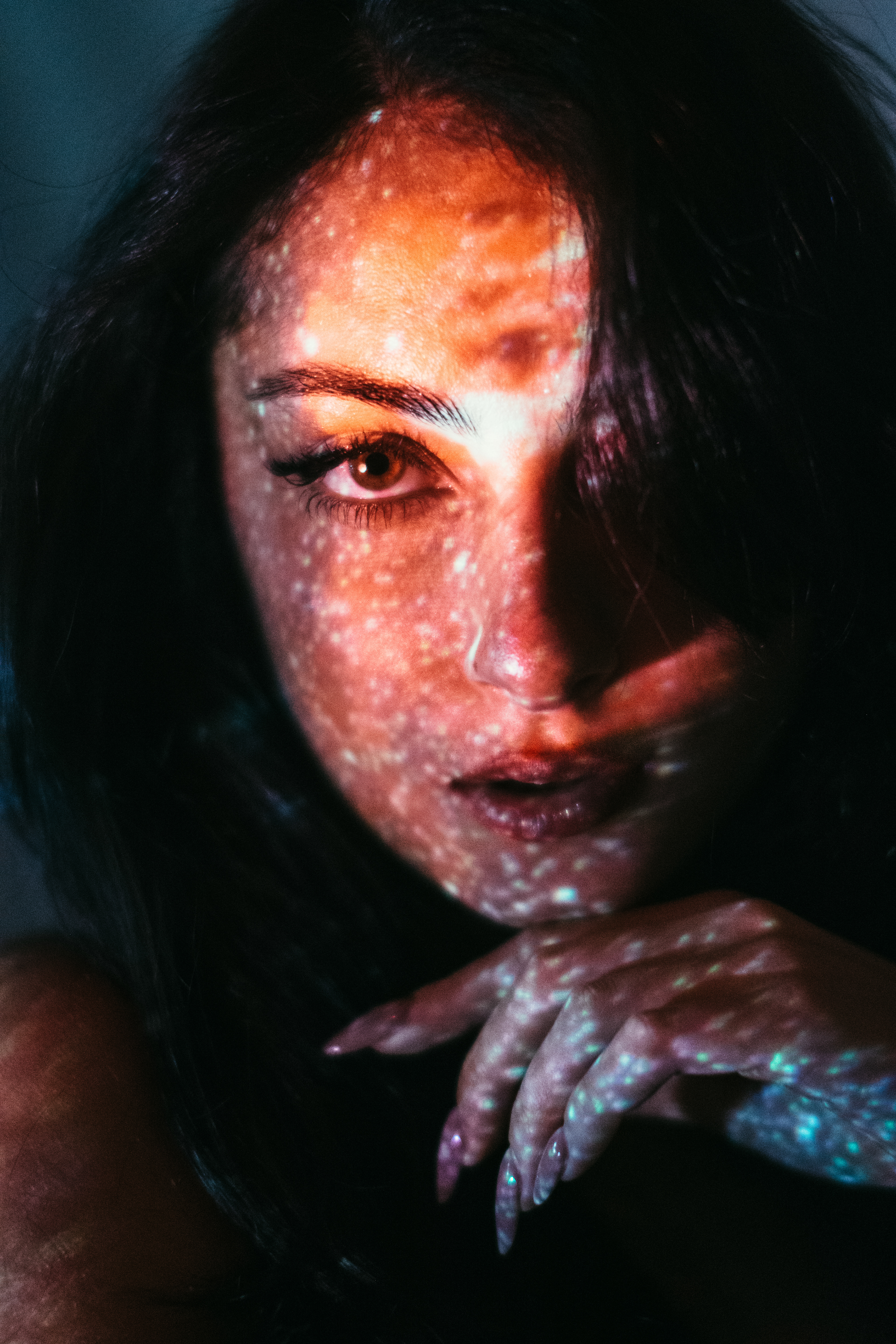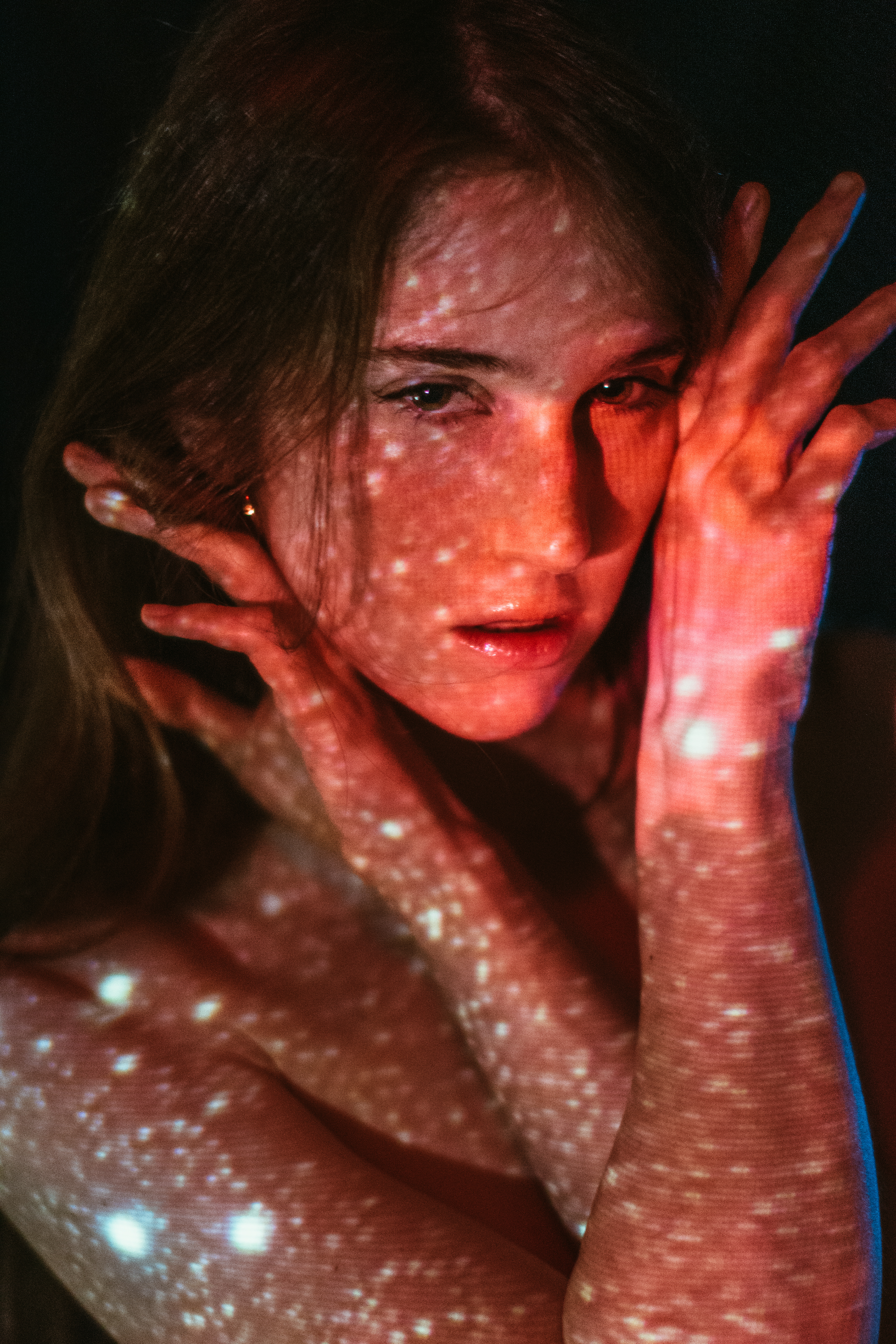 Featured on D'Arblay Street Gallery Website I reimagine the light as a bridge between the inner and outer worlds. By projecting cosmic imagery onto the human form, the collection captures a dynamic interplay where personal identity and the vast universe intersect. The projected light serves not just as an external source, but as a means of revealing an inner landscape, transforming the body into a canvas that reflects both the intimate and the infinite. Astrophotography images projected are taken by Jason Betzner.